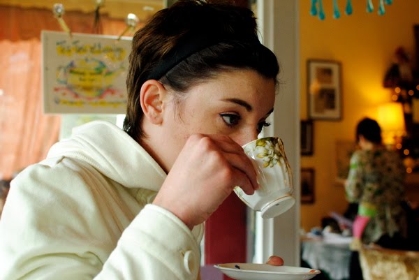 This sounds like such a lovely outing! I love the decor and especially the china. Oh, and your sweater is super cute!