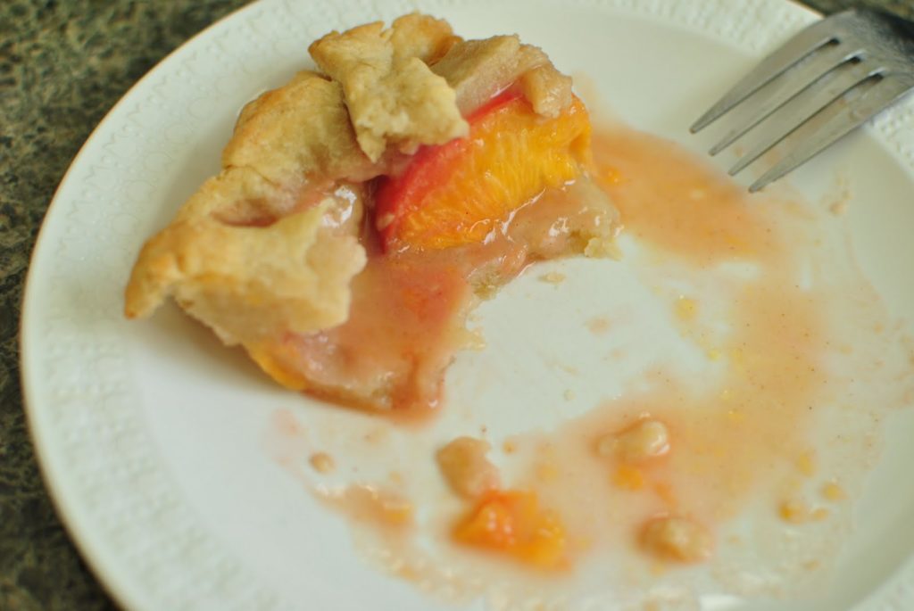 The peaches I found at the farmer’s market this weekend filled my car with a sweet aroma and were juicy and ripe. I knew they’d be good in the peach pie I wanted to make, but I didn’t realize just how good. I’ve found some fruit dessert recipes take away from the wonderfulness of eating really good fruit by itself, but this pie recipe made the peaches taste so much better. It was also my first time rolling my own pie dough and I was pleasantly surprised at how easy it was. I used this recipe (but had to double the amount of water called for) because it’s called “Mom’s Pie Crust” (moms always know best!) and only uses butter (shortening kinda freaks me out). It wasn’t as flaky as I thought it would be, but I love doughy pies so it was perfect for me. I followed these instructions to make the lattice top and was really proud of how pretty it turned out.