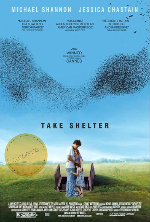 Take Shelter is about a young dad and husband who lives a simple life in a small town. He starts having apocalyptic visions of a massively destructive storm and becomes obsessed with building a shelter for him and his family. It’s a quiet movie that’s a tad slow, but it’s beautifully shot, well-acted, and the building tension and uncertainty of what his visions mean make it thoroughly eerie and haunting.