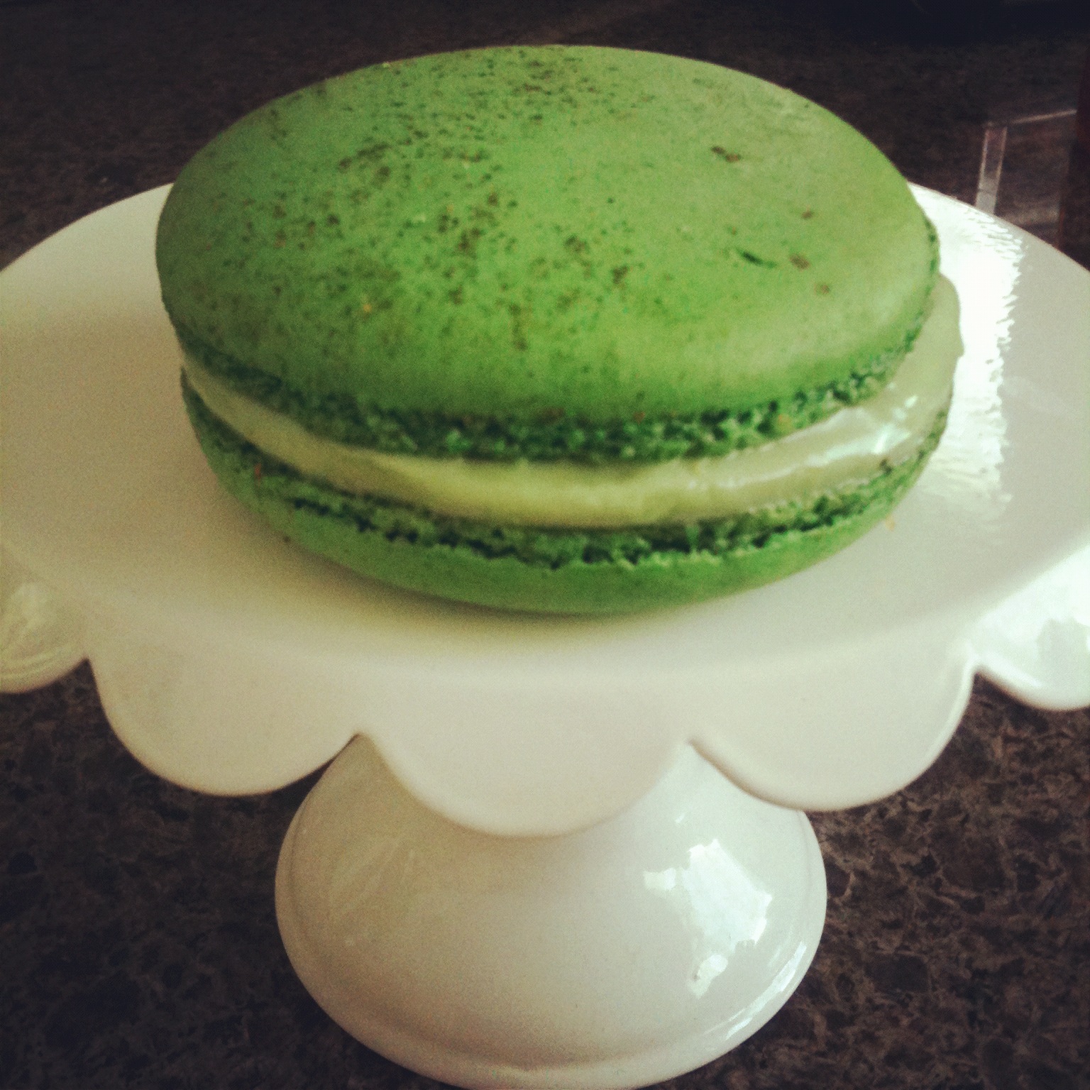 {best afternoon snack: an extra-large pistachio macaron from Cocola}