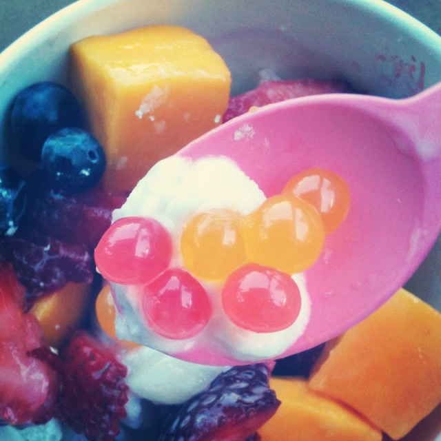 {finally tried the “popping boba” in my froyo. like fruity caviar.}